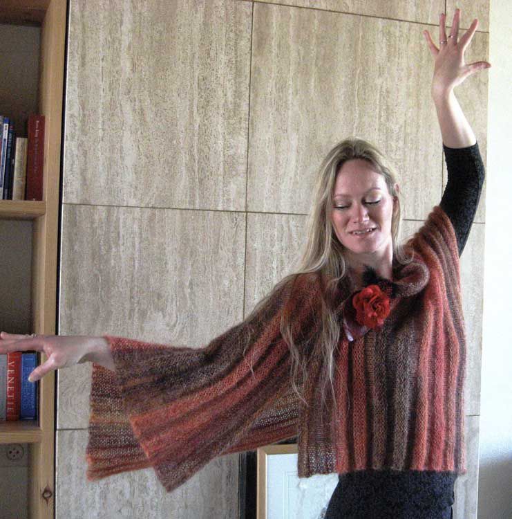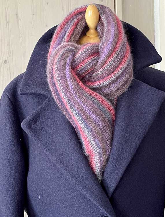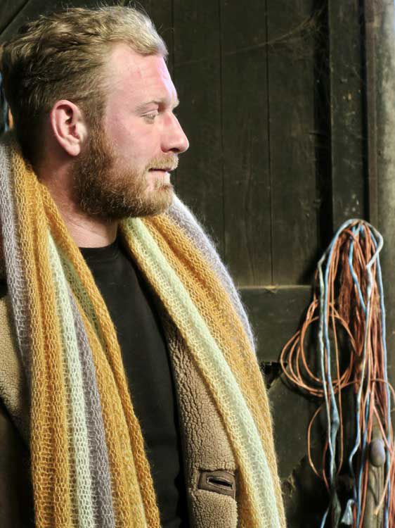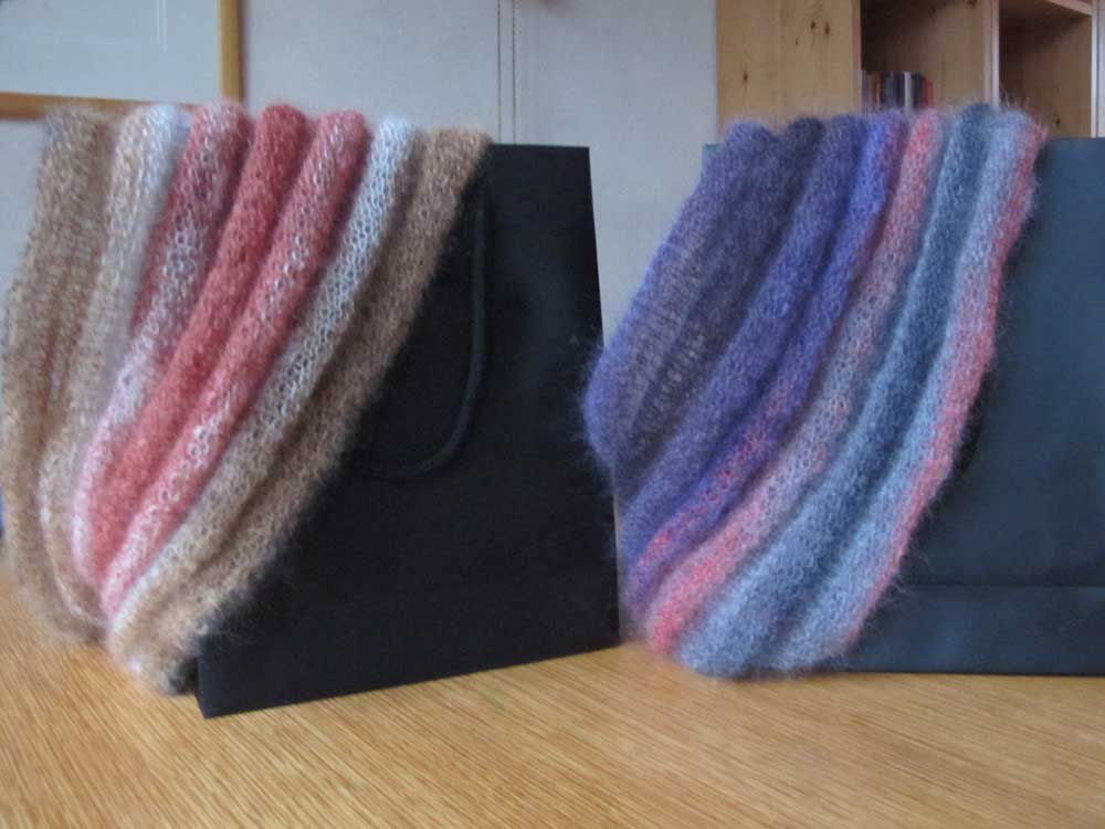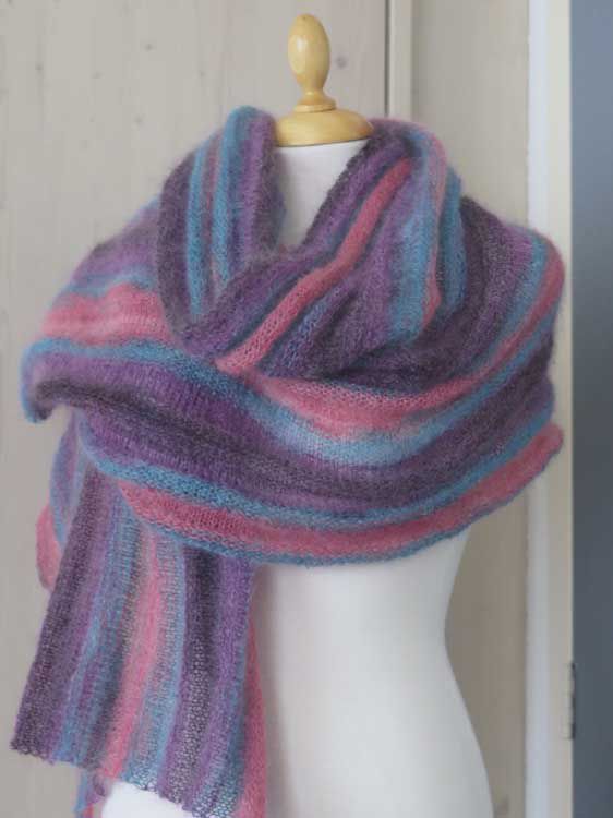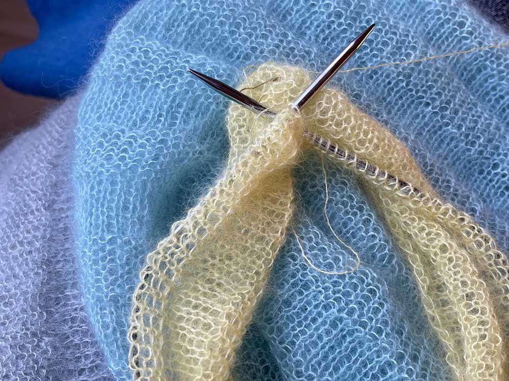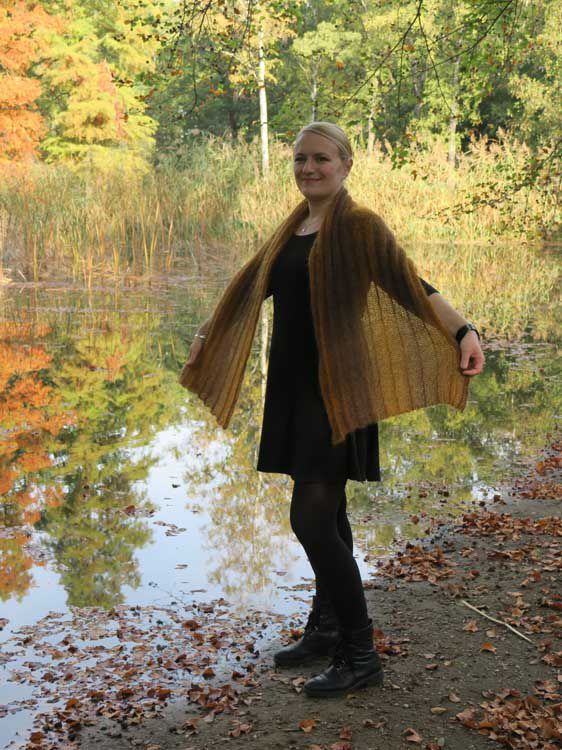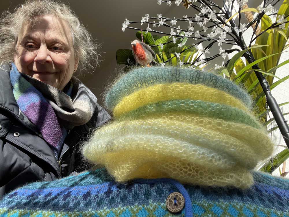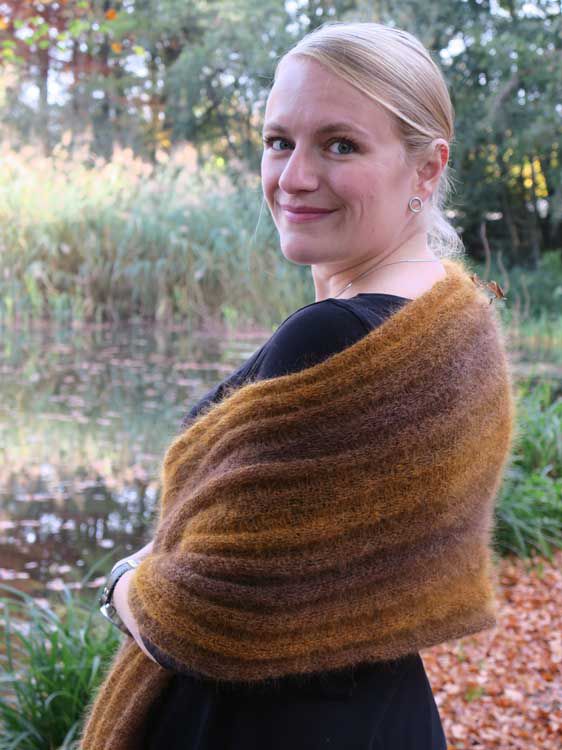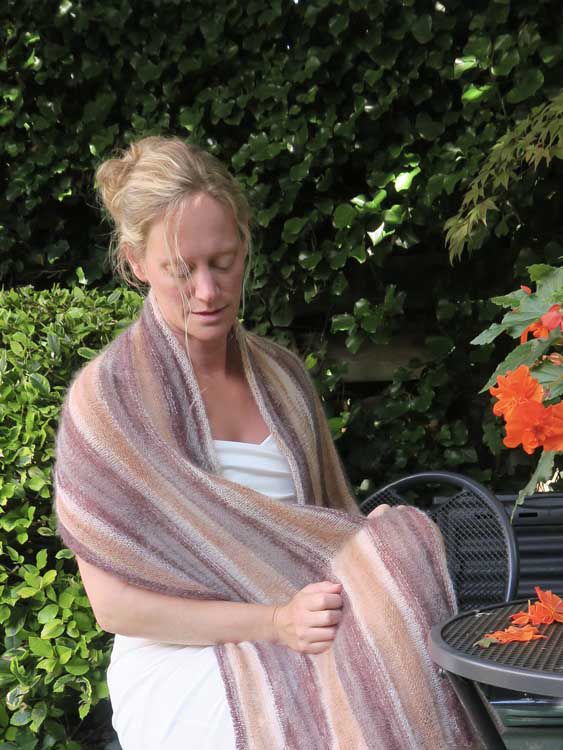 Het tactiele van het breien met dit ragfijne garen van mohair/zijde brengt mij rust. De eigenschap van het materiaal is vederlicht en warm. Dit is voelbaar in het dragen.